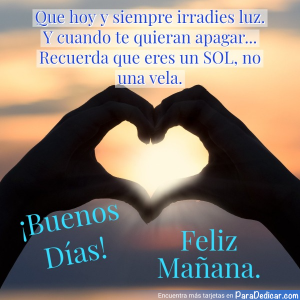 Envía buenos deseos con este inspirador mensaje. Recuerda que eres un sol, no una vela. Comparte luz y amor cada día. ¡Feliz Mañana!